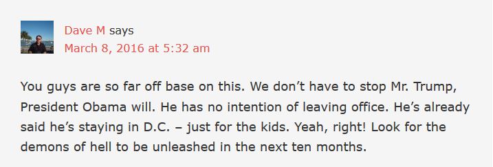Just so’s you know, “Dave M” is a Southern Baptist pastor. Think about the ignorance and paranoia this man must be peddling in his church — and that it happens tax-free.
