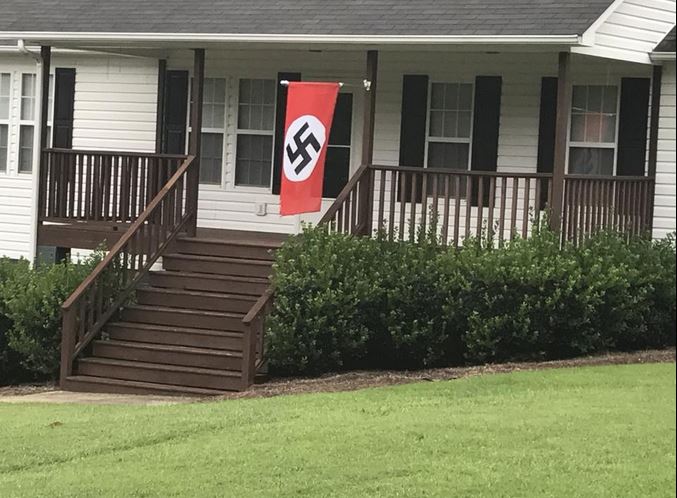 A bright red Nazi Party flag waved in front of Joe Love’s Gaston County residence Sunday afternoon, a day after white supremacists orchestrated a violent rally in Charlottesville, Virginia, that left three dead and dozens injured.