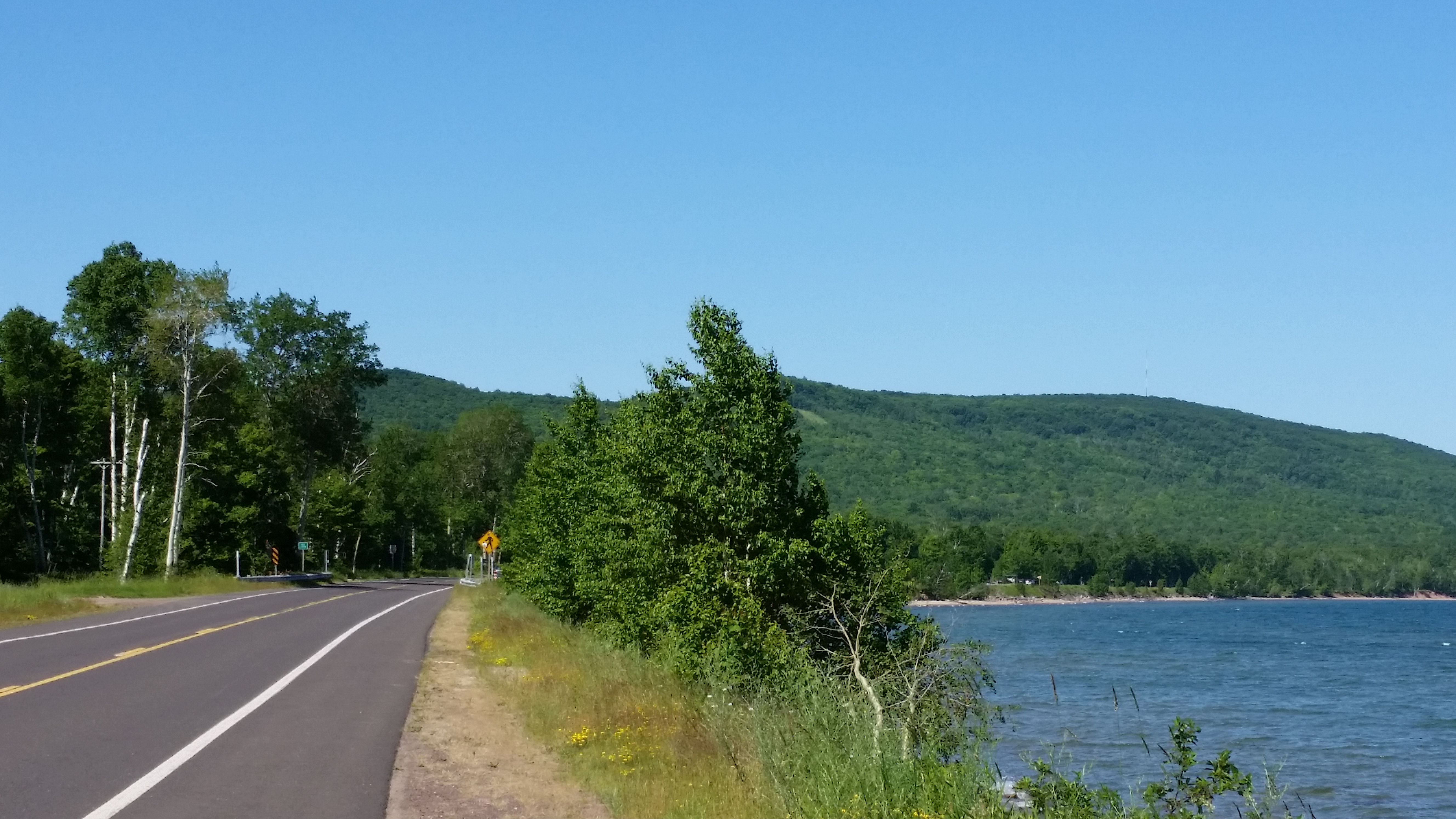 Porcupine Mountains ahead, Lake Superior on the right